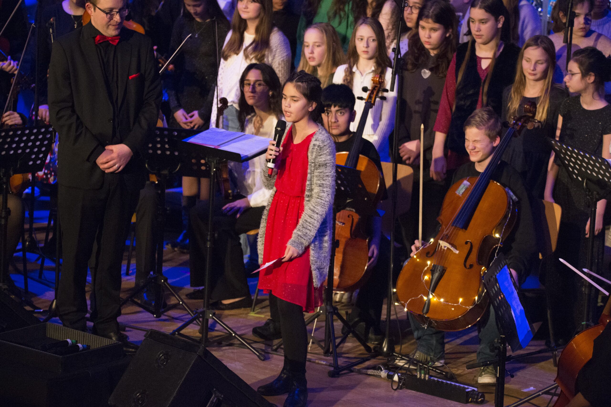 Im Rahmen des Erasmus-Austausches beeindruckten Schülerinnen und Schülern aus Faro in Portugal mit dem gefühlvoll vorgetragenen „Libertango“ von Astor Piazzolla und auch die Kinder des JEKI-Ensembles der „Grundschule Am Kiefernberg“ gewannen das Publikum für sich.